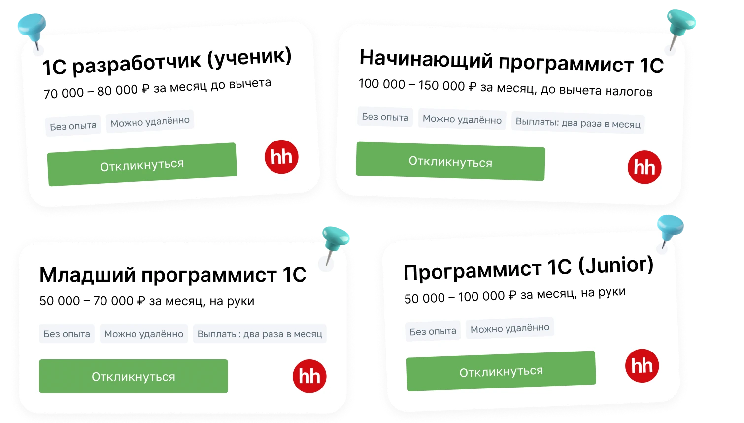 Высокий спрос на 1С‑программистов позволяет даже на старте карьеры найти работу в удобном формате и с высоким доходом.