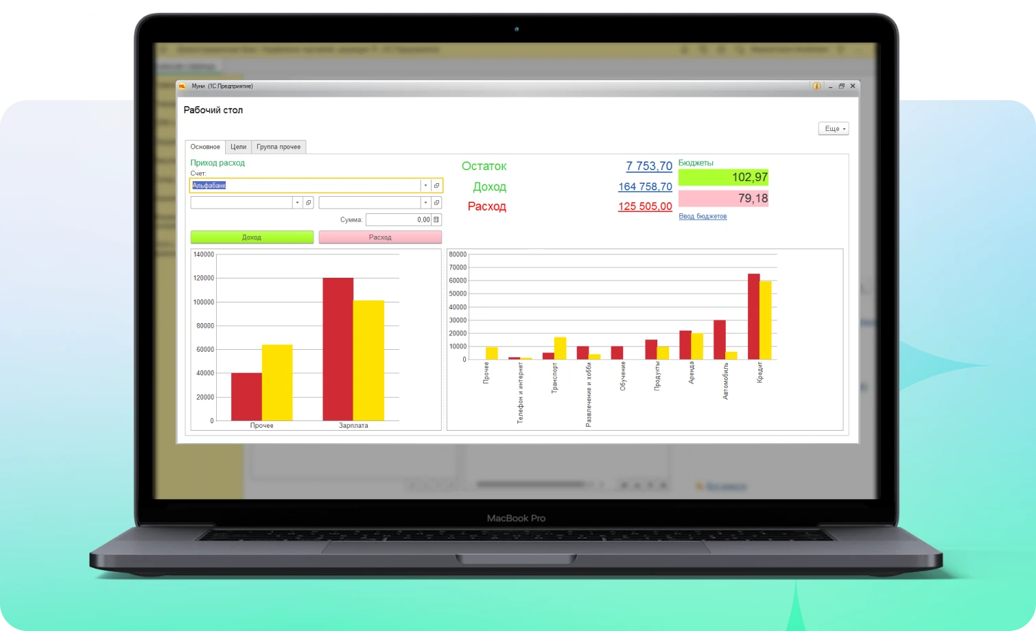 Разберётесь с проведением документов по регистрам накопления. Узнаете, как создавать отчёты и дашборды для анализа финансов.