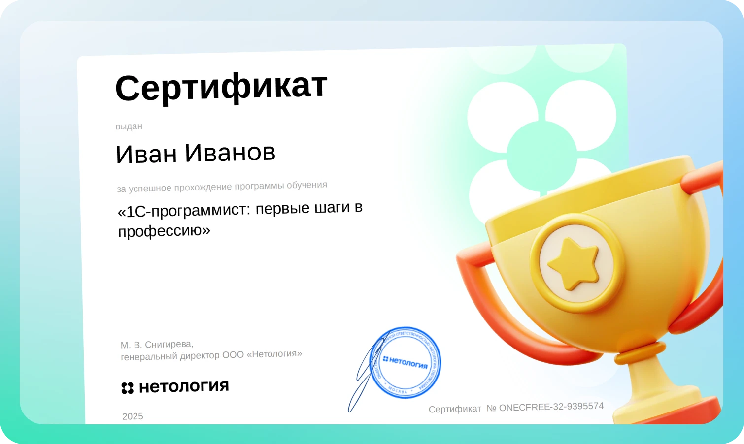 Мы составили подробный план развития в сфере 1С‑программирования — он отлично дополнит те знания, что вы получите на курсе.