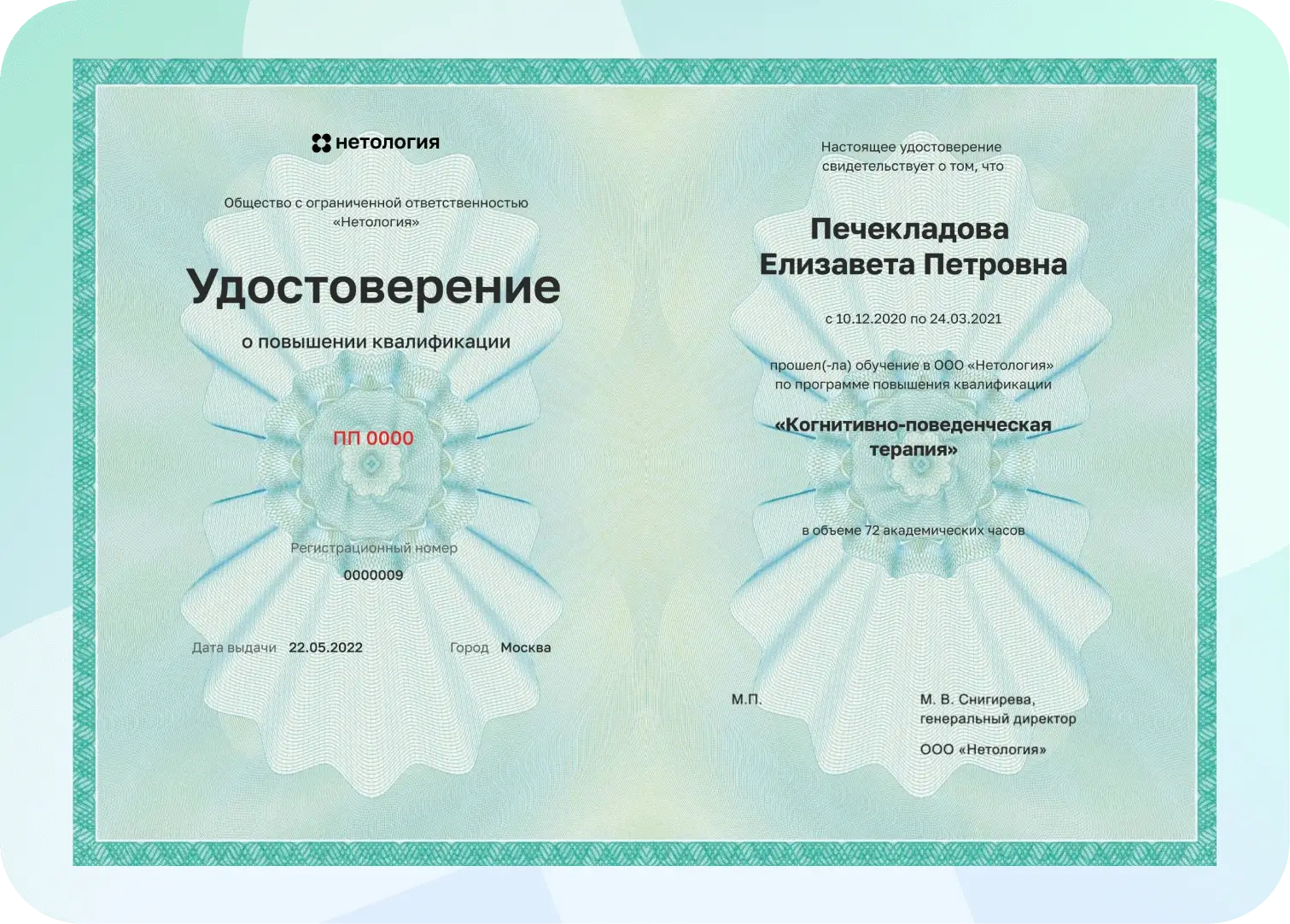 Диплом о профессиональной переподготовке, удостоверение о повышении квалификации по КПТ