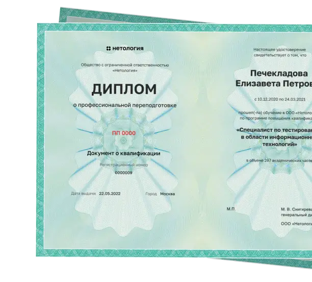 После обучения вы можете получить свидетельство Нетологии и диплом о профессиональной переподготовке.