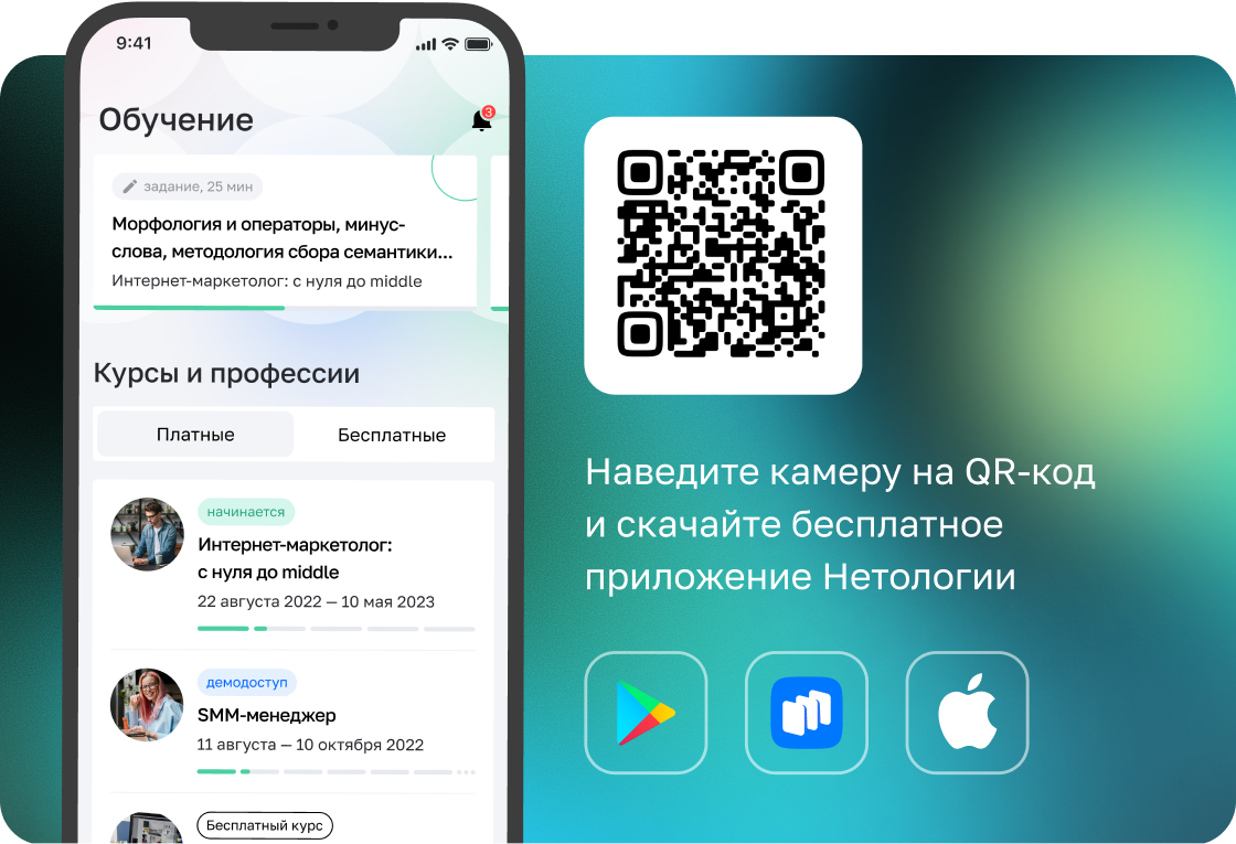 Нетология занимается обучением уже более 12 лет и имеет собственную методологию проектирования курсов. Каждый курс создаётся с учётом интервью с экспертами в этой сфере, с нашими компаниями-партнёрами, анализом рынка труда и другими исследованиями. Всё для того, чтобы вы получали актуальные на рынке труда знания. Мы также создали поддерживающую образовательную среду, чтобы вам было интересно и комфортно учиться.
