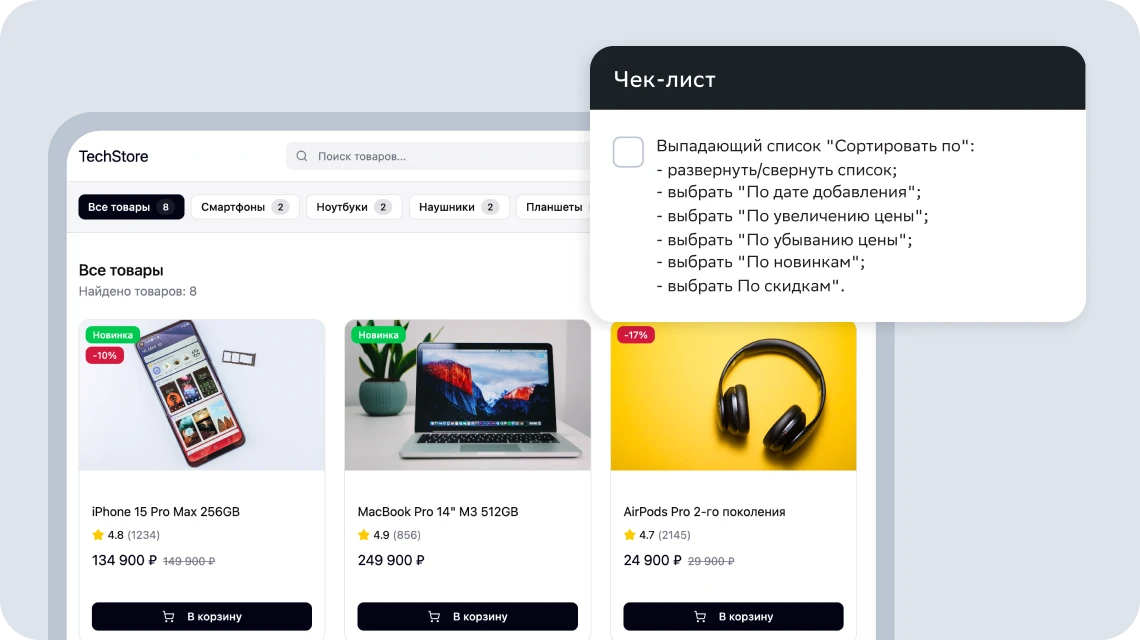• Веду техническую документацию, описываю чек-листы, тест-кейсы, баг-репорты