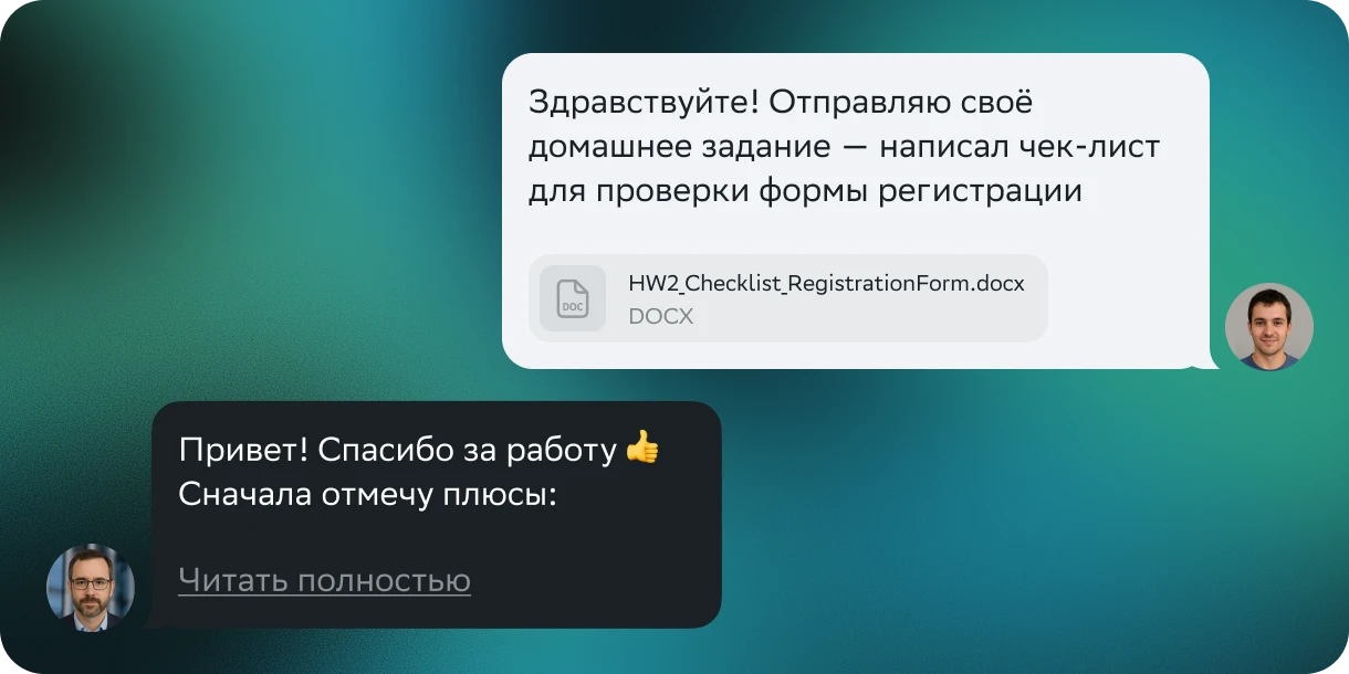Эксперты курса проверяют каждое задание и проект, дают развёрнутые комментарии